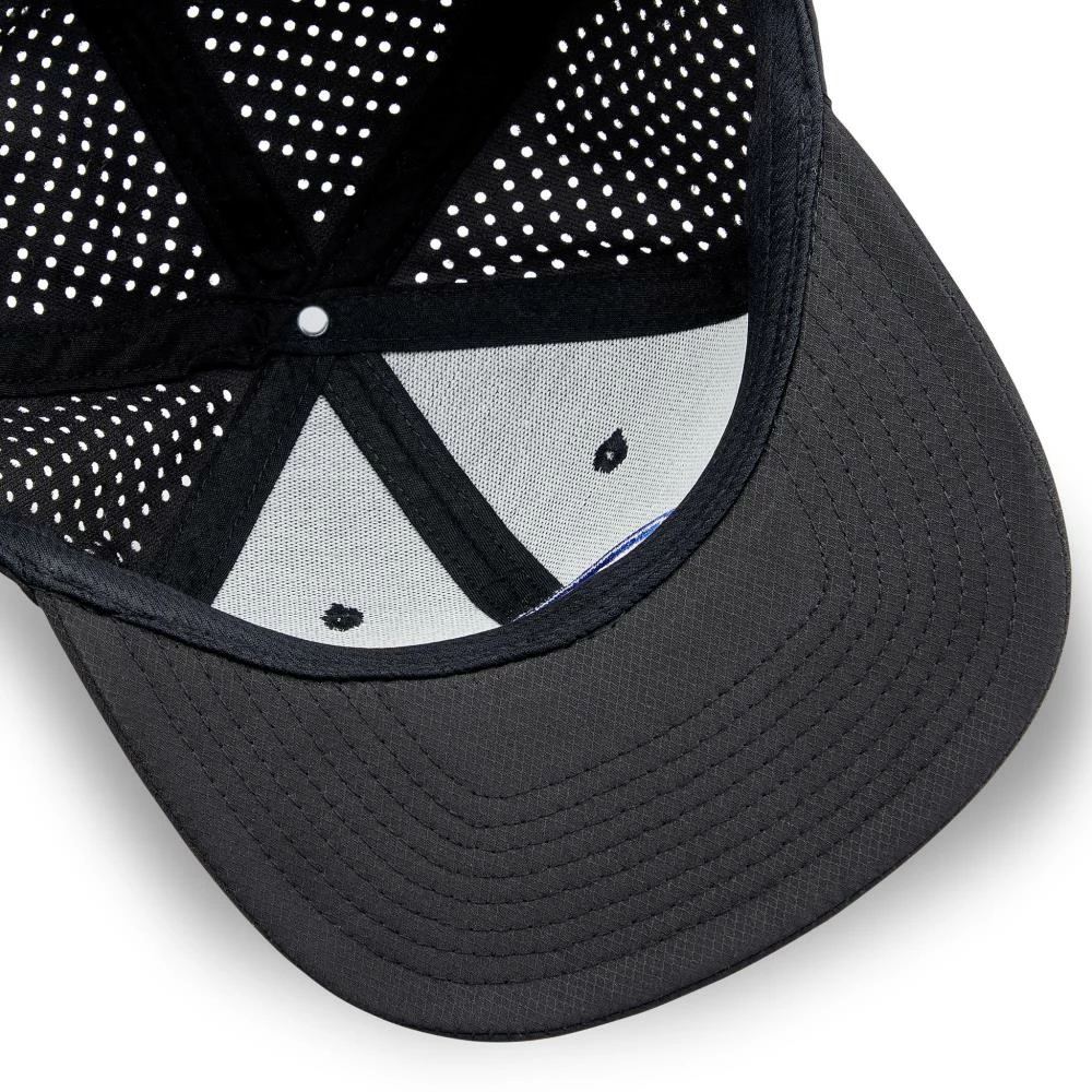 Six-panel flat bill premium pro performance snapback with a PVC heat transfer. Black under-visor to reduce glare.