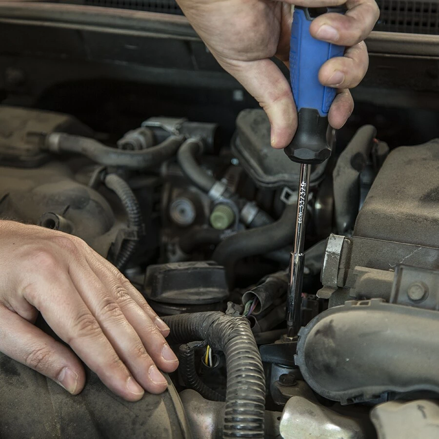 - Quick-release button on the 90-tooth ratchet allows for rapid socket and accessory changes