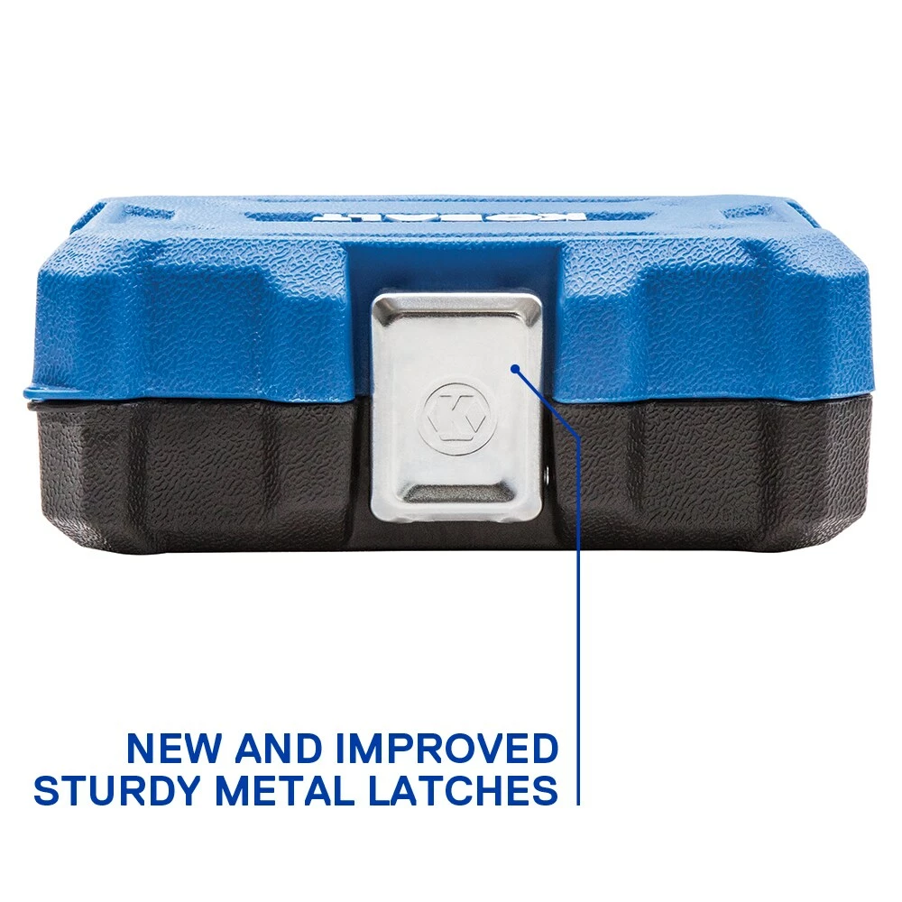 - Metric and SAE socket sizes are easy to identify with laser etched size call-outs and color-coded stripes to identify metric (blue) and SAE (red) measurements