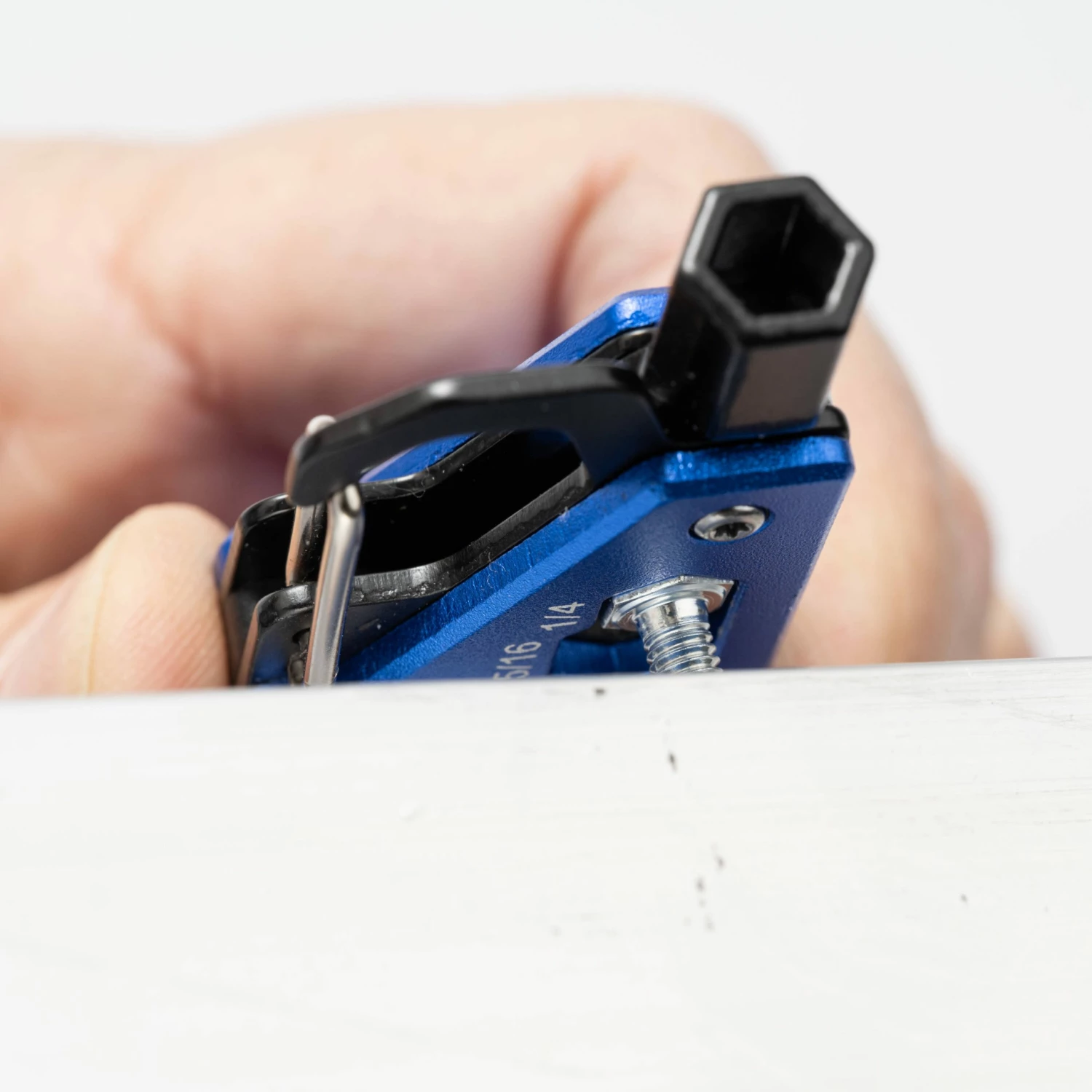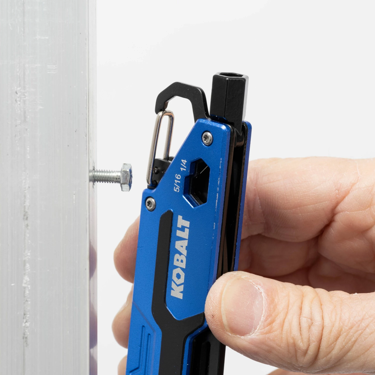 This Multi-function Knife includes such essential tools as Screwdriver Bits, Hex Wrench Sockets, and a Bottle Opener giving you convenience in a foldable design. Two Screwdriver Bits (1/4in x 1in, and PH2 x 1in) are stored in the handle for keeping your bits in place and ready-to-use when you need them. Sockets for a 5/16in and 1/4in hex key are built-in, along with a fixed slotted screwdriver blade. The Tanto blade design allows you to puncture a tough surface. When not in use, the blade can fold away using a safety-lock mechanism. A stainless steel clip keeps your tool secure on your belt while the carabiner will affix it to a strap on your tool bag.