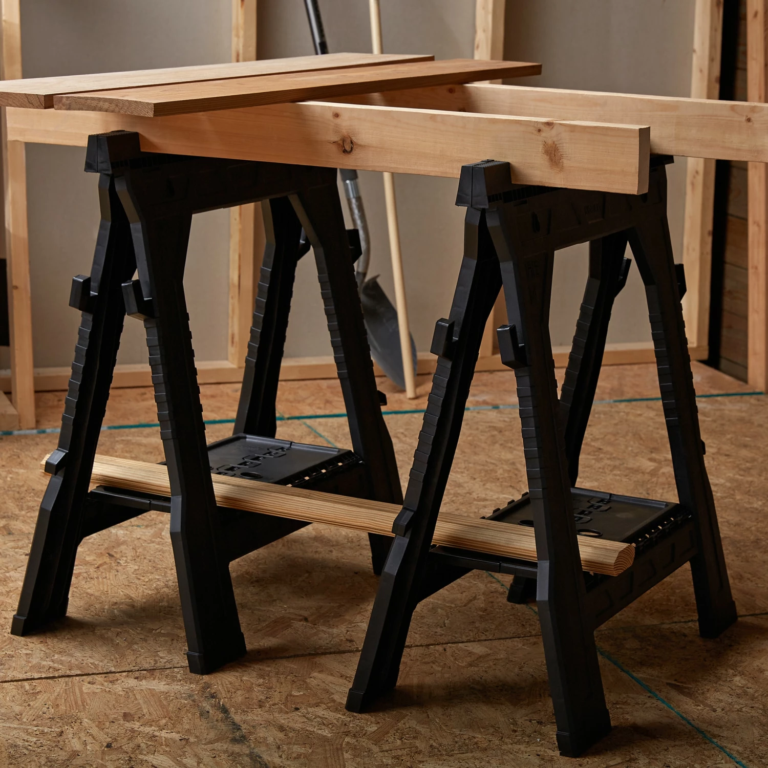 - Kobalt 2-pack plastic saw horses provide a sturdy frame to safely support material for projects