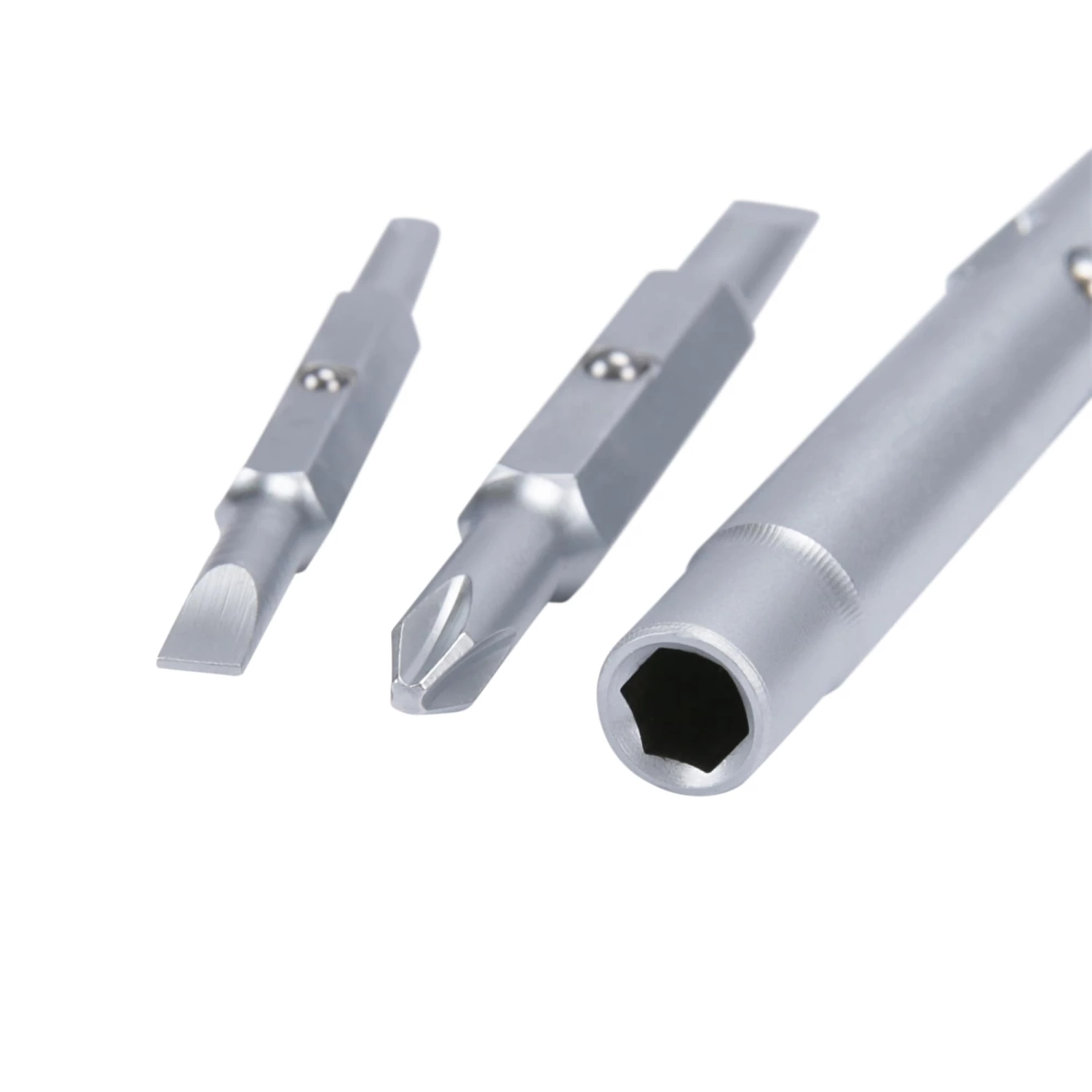 Whether you are on the jobsite, or working around the house, this 6-in-1 screwdriver can handle lots of essential tasks. The most common bit sizes are covered: two Slotted (3/16in and 1/4in9, two Phillips (PH1 and PH2) and two Nut Drivers (1/4in and 5/16in). You’ll reach for this handy tool again and again.